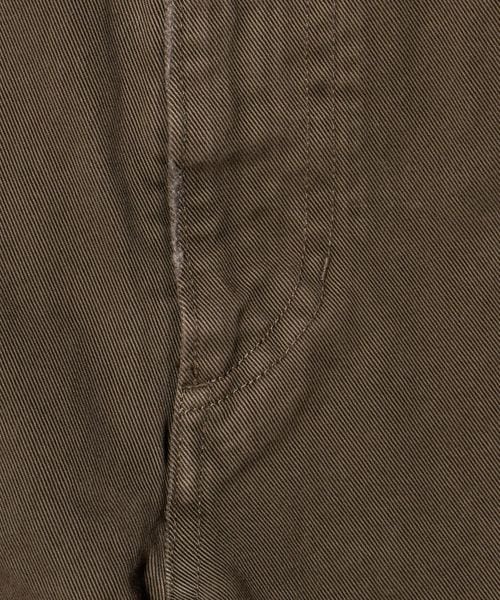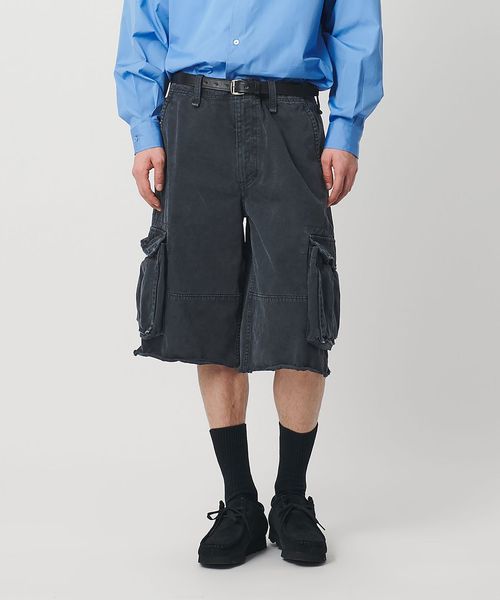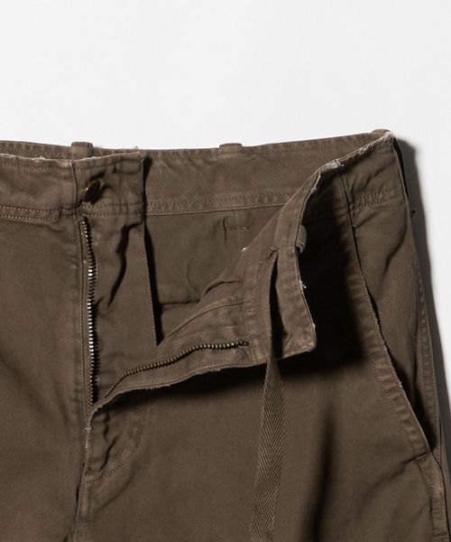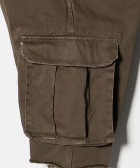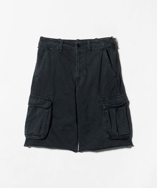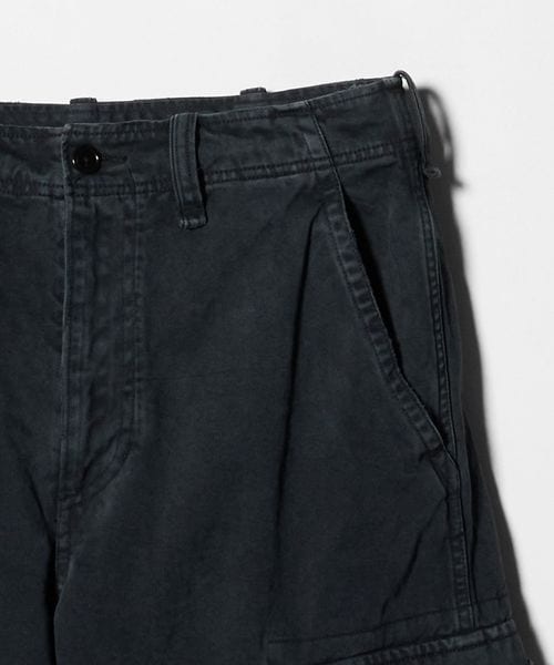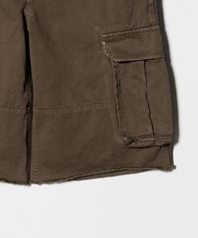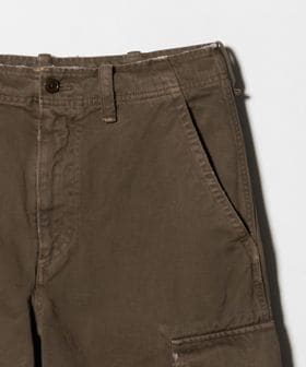 カットオフ風の始末でカールした裾が、履きこんだような奥行とアクセントを添えながら、カーゴポケットをやや低めに設置することで、印象的なルーズバランスを演出しました。