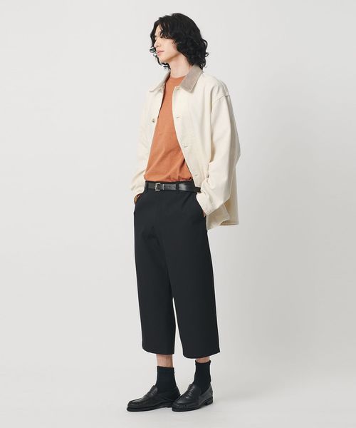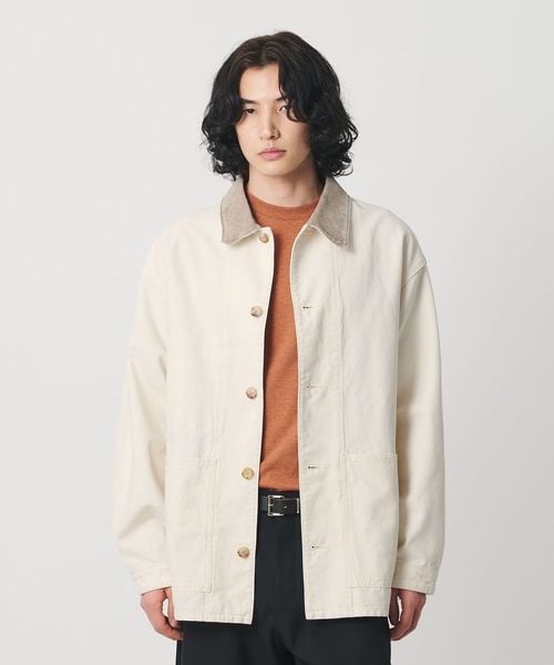 アメリカのカバーオールをベースに、都会的なムードでアレンジしたカバーオールです。両色ともに高密度ダックを採用しています。ネイビーは硫化染め糸の生地を用いて、洗い込むことによってヴィンテージのような表情に。ホワイトは、無染色の生成り糸を使用したナチュラルな仕上がり。原料が持つ柔らかな風合いと、あえて残したカスによるラスティックな表情が奥深い魅力を引き立てています。ゆったりとしたオーバーサイズのボディに、直線的で大振りなポケットを組み合わせることで、モードな雰囲気を演出。ウォッシャブルカウレザーの襟とホーンボタンがほどよい重厚感と知性を添え、品のある大人のカジュアルスタイルを叶えます。