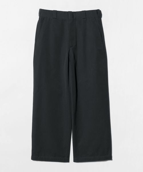 アメリカのヴィンテージワークパンツをベースに再構築した一本。経糸には80番手の上質なコットンを三子撚りした糸を、緯糸には梳毛糸を用い、高密度に織り上げたギャバジンクロスを採用しています。ウールの上品さとコットンのカジュアルな風合いを併せ持った万能な生地感が魅力です。太めのベルトループがワーク由来のエッジを添えつつ、シルエットはワイドストレートながら、腰回りをすっきりとまとめ、洗練されたバランスに仕上げました。