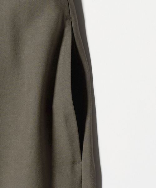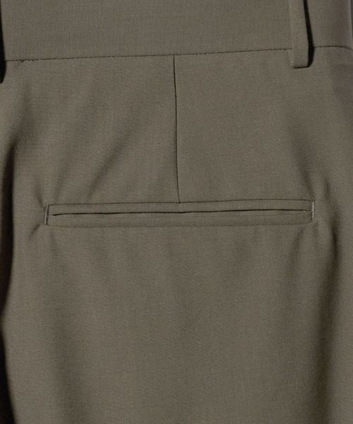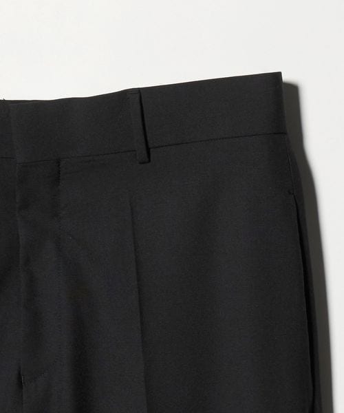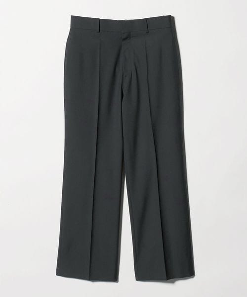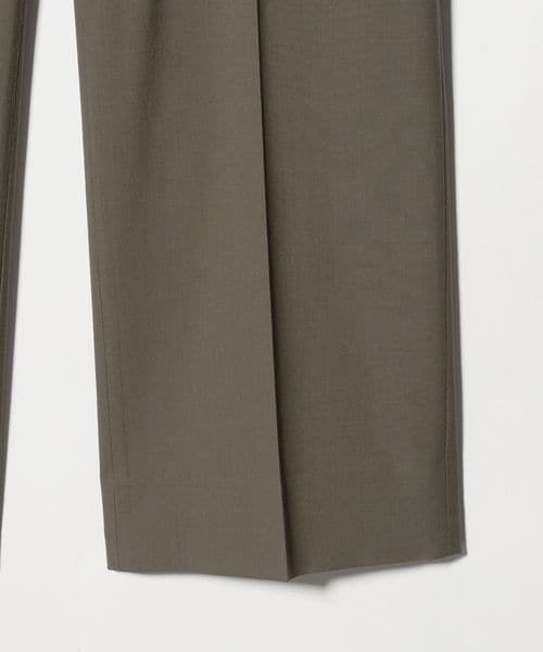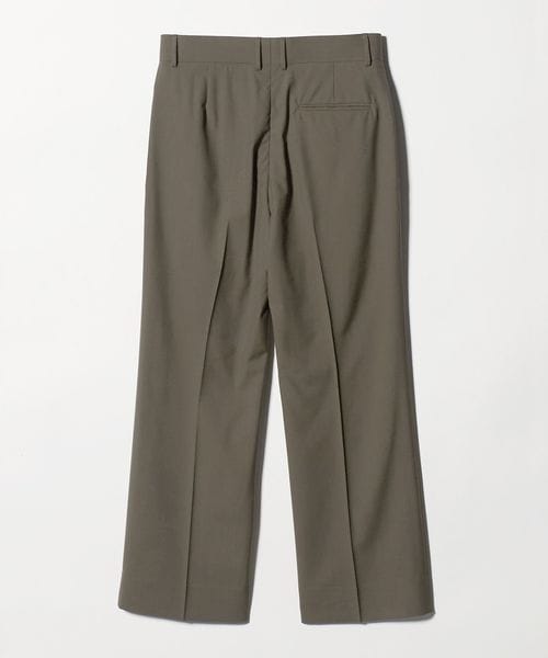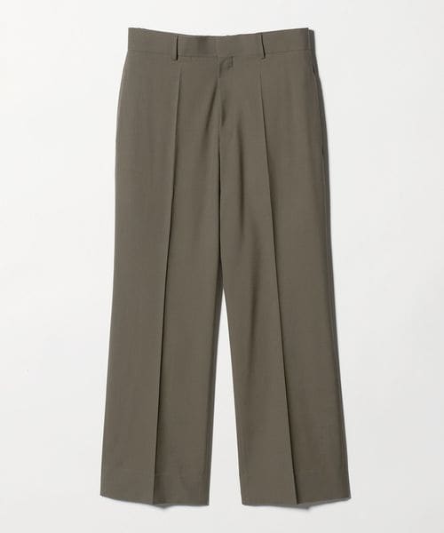 僅かにフレアに感じる絶妙なラインにこだわった、ワイドストレートパンツです。細番手の梳毛強撚糸を使用して超高密度に織り上げたトロピカルウールを使用しています。上質な原料による表面の光沢が美しく、肌離れのよいタッチで春夏シーズンを通してご活躍いただけます。裾にクッションができたときのニュアンスが心地よいスタイルに導きながら、カジュアルにもモードにも寄り添うマルチな一着。
