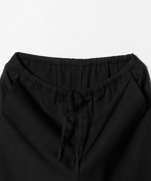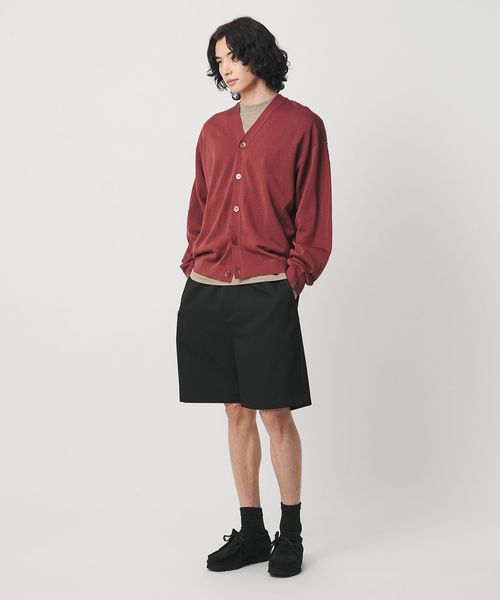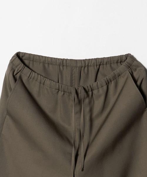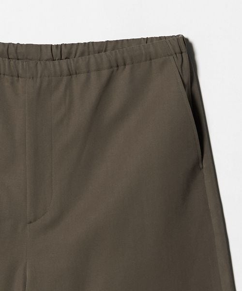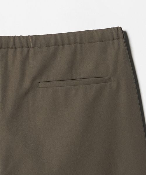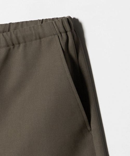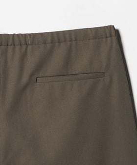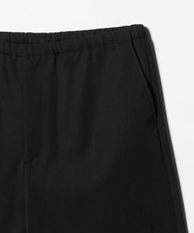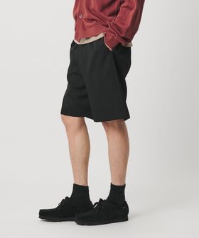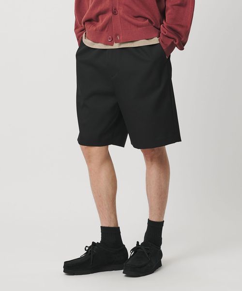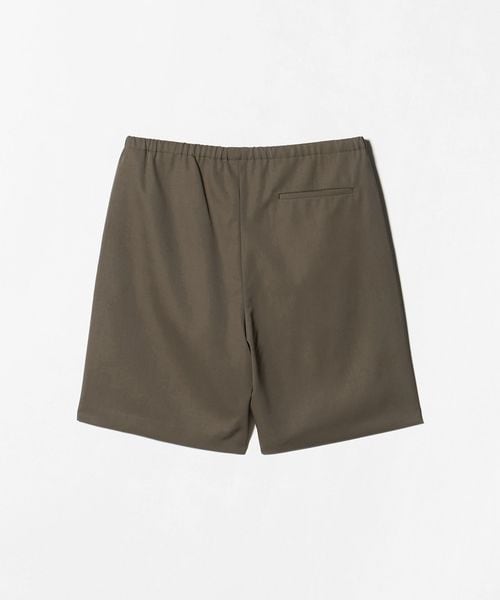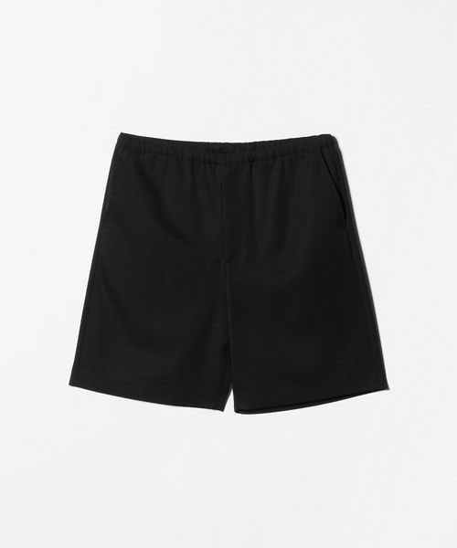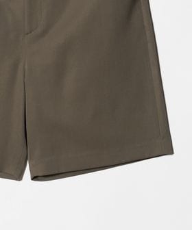 ミニマルデザインのイージーショートパンツです。上質な梳毛糸を高密度で織り上げたギャバジンを使用し、オフスケール+含浸加工を施すことで、ウールの表面の毛羽を排除したクリアな表面感が特徴です。裏地を省きながらも快適なはき心地にこだわり、日常使いに寄り添うコンフォータブルな一本に。ワイドシルエットながら、上品な生地感がカジュアルになりすぎず品よく楽しめます。日常の装いに幅広く寄り添い、洗練された大人のアーバンスタイルに導くおすすめの一着。