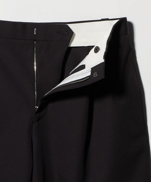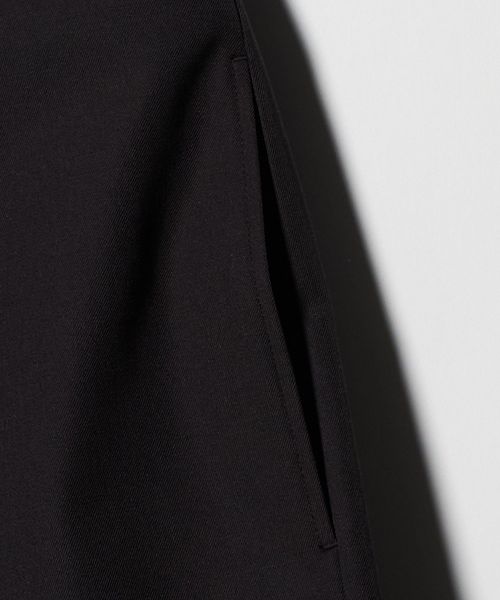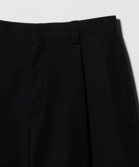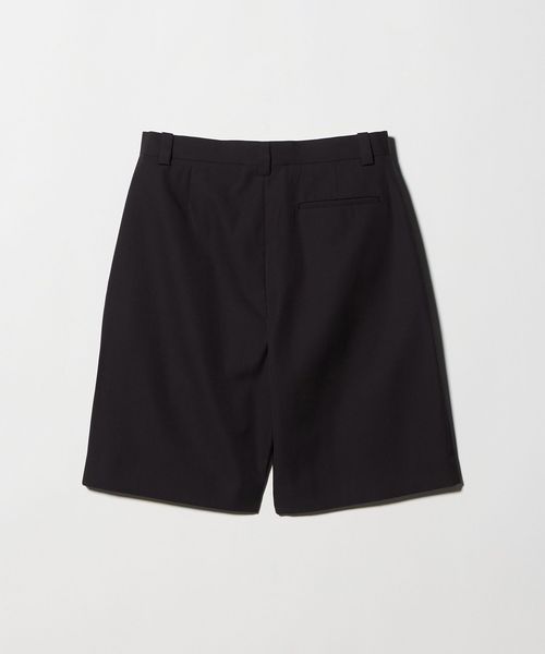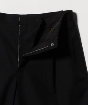 やや長めのレングスと大胆なオーバーサイズシルエットが特徴のショートパンツです。前年モデルよりもレングスをやや長く、太めのシルエットにアップデートしました。上質な梳毛糸を強撚し、限界高密度で織り上げたハイカウントギャバジンを使用しています。強撚することで表面がドライタッチになり、サラリとした肌触りで夏場にもはきやすい一着に。ベルトループ、バックポケットの玉縁など、丁寧で綺麗な縫製にこだわった品のある仕上がりも魅力です。スラックス仕立ての端正なバランスが重厚感のあるムードを添え、きれいめにもカジュアルにも幅広く寄り添います。