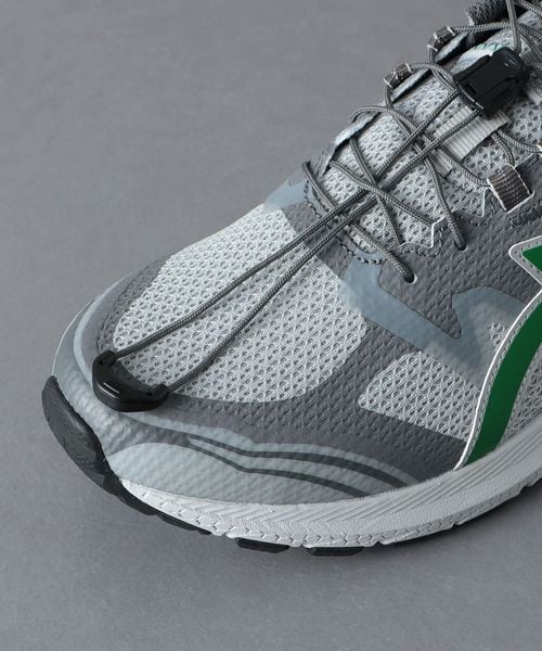 今作は、アウトドアからタウンユースまで活躍するGEL-TERRAINをベースに、SAN SAN GEARの特徴的なテックウエアのデザイン要素を取り入れた。