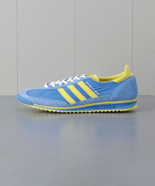 <Sporty&Rich>と<adidas Originals>とのコラボ レーションモデルが登場。1972年のドイツ・ミュンヘンオリンピックに向けて開発されたアディダスのマラソンシューズ「SL72」をアレンジ。サイドのスリーストライプス上部には<Sporty&Rich>のロゴを配し、スウェーデンの国旗にインスピレーションを得たイエローとブルーをカラーリング。