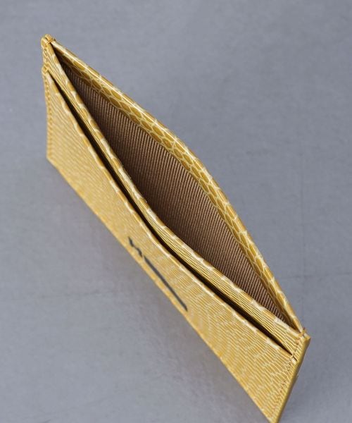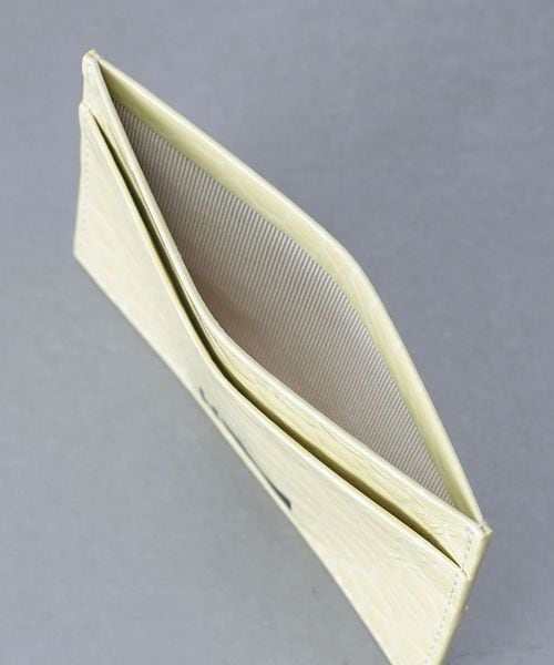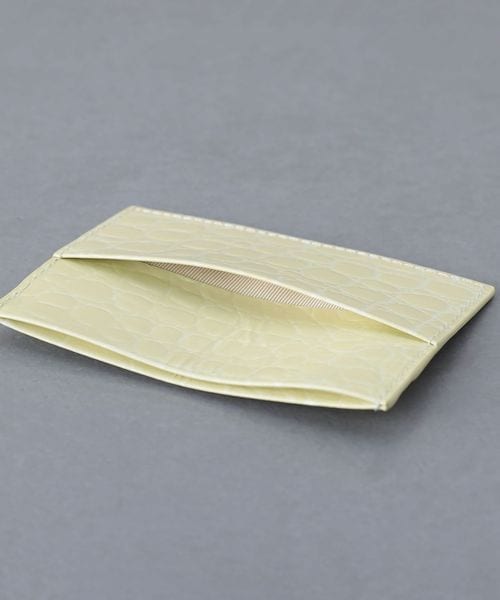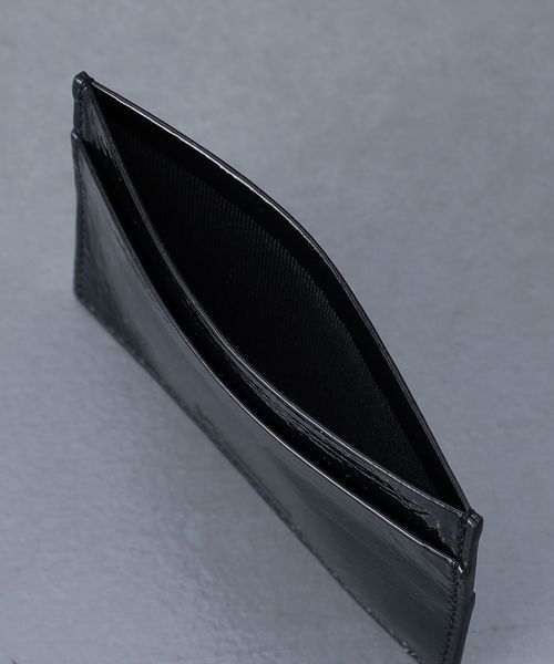 こちらは、フロント・背面・中央にポケットを配備し、必要最小限のカードが入るコンパクトなケース。エナメル加工を施した、華やかな型押しレザーとプレーンなブラックレザーをご用意しました。アクセサリー感覚で楽しめる特別感漂うバリエーションは、親しい方へのギフトにも最適です。