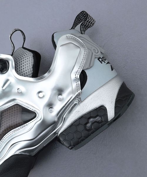 90年代のハイテクスニーカーブームを象徴する「REEBOK INSTAPUMP FURY」をベースにした、<Aries>とのコラボレーションモデルです。随所にシルバーカラーを用いることで、未来的な雰囲気を演出。さらに、つま先のアウトソールには蛍光色を加え、アクセントとして効かせています。シュータブには格子模様のステッチを施し、つま先バンドにはリーボックのベクターロゴと<Aries>のAのロゴを配置。ヒールタブにもロゴをあしらい、ブランドのアイデンティティを感じさせる仕上がりとなっています。