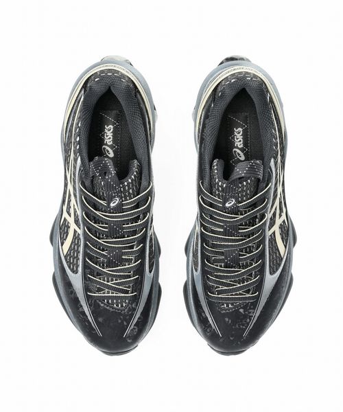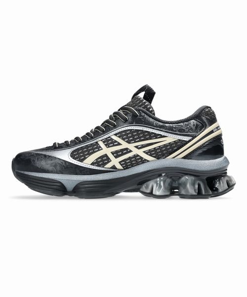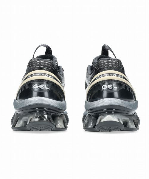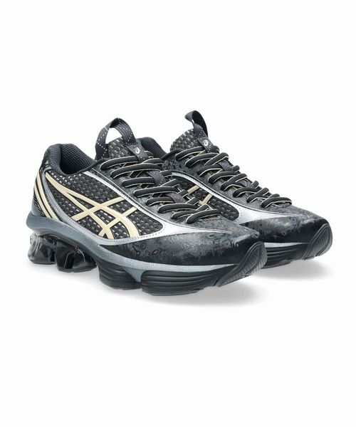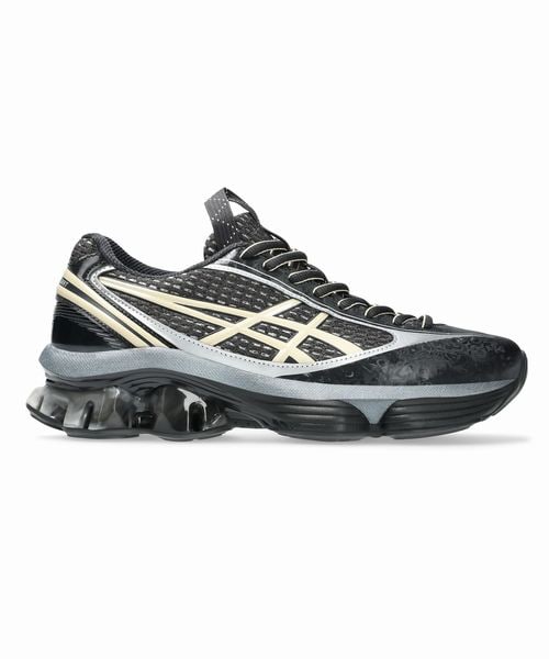 Kiko Kostadinov StudioとASICS SportStyle開発チームが監修したスタイル。US6-S GEL-KINETIC FLUENTは、STREAL 361サッカースパイクと洞窟のコンセプトからインスピレーションを得ています。アッパー構造は、テクニカルな溶接とハトメを特徴とし、独自のツートンメッシュとグラデーションスプレーで装飾されています。これらのディテールは、ビジュアルアーティストのEdith Dekyndの影響を受け、デザインに奥行きと質感の両方を加える現代的な素材を融合させています。