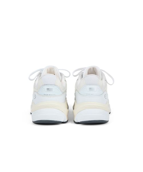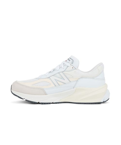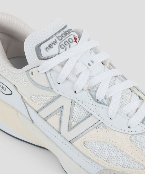 テディ・サンティス監修による2025SSコレクションモデル。生誕40周年を記念しアップデートされた「M990」の最新バージョン「v6」モデルをベースに、異素材をアッパーに駆使し、かかとの側面には「990」のバッジ、更新されたソール ユニットの上にある後部の新しいヒール クリップが装着されたデザインに仕上がっています。