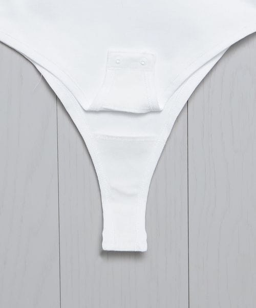コットンテレコ素材を使用したボディスーツです。ボディコンシャスなシルエットですっきりと、アクティブに動くシーンにも重宝します。背中が大きく開いたデザインで、センシュアルな雰囲気をプラスします。
