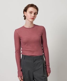 強撚のさらりとした風合いと、シアーな質感が特徴のロングスリーブカットソーです。ネックの始末や、外出しにしたメローロック仕上げの繊細な表情が、ニュアンスを生む印象的なスタイルを叶えます。シンプルながら、一枚着からインナーレイヤードまで幅広く楽しめる万能なアイテム。ほどよいフィット感がカジュアル感をおさえ、フェミニティなムードを高めてくれます。