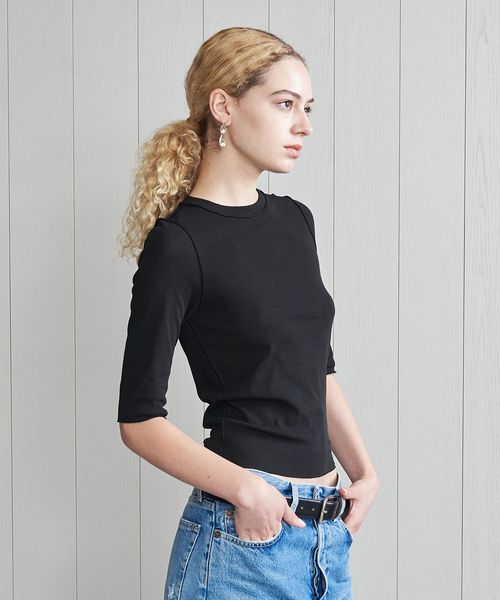 さらりとしたタッチが特徴のハイゲージコットンフライスのカットソーです。ほんのり透けるシアーな風合いに、フィット感を生むサイズバランス、保守的なムードが漂うハーフスリーブの組み合わせが新鮮な一着。外出しにしたメローロック仕上げの繊細な表情が、着心地のよさとニュアンスを生む印象的なスタイルを叶えます。一枚着のほかレイヤードにも活躍するアイテムは、色違いで揃えておきたい万能な一品。