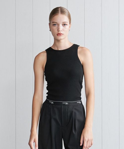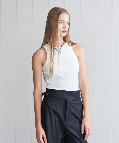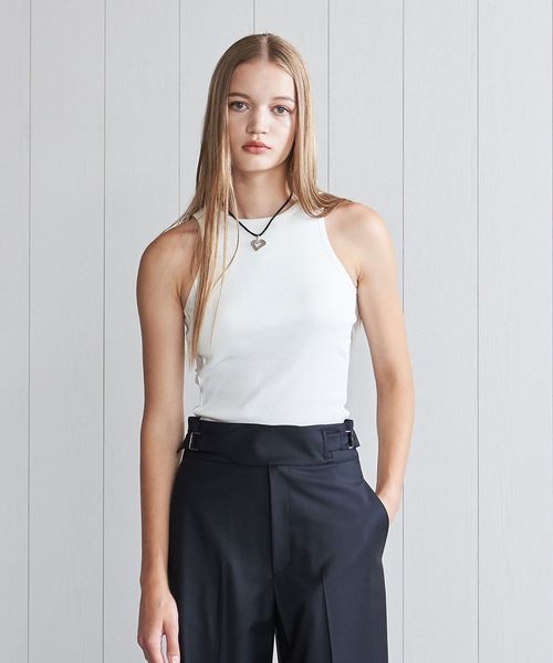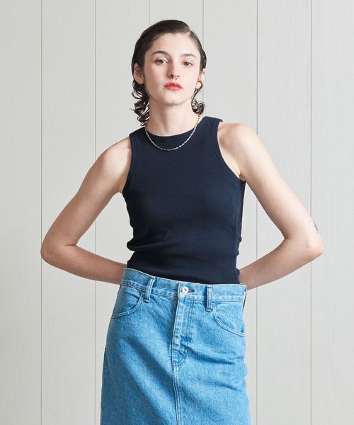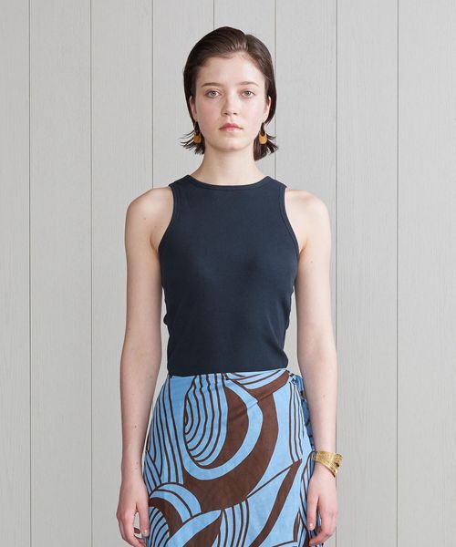 素肌に心地よいコットンリブ仕立てのタンクトップです。スタイリッシュなアメリカンスリーブのデザインで、一枚着としてもインナー使いとしても大活躍。パッド付きの利便性を備えつつ、ネックやアームホールの絶妙なバランスがセンシュアルさを引き立て、着こなしの鮮度アップが叶います。