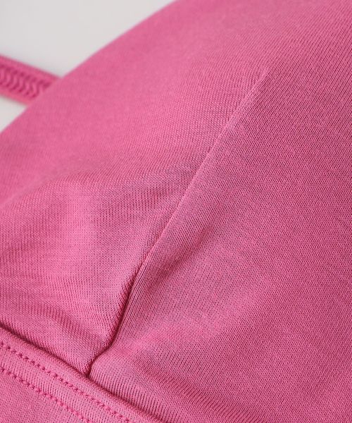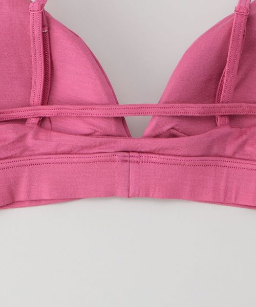 滑らかな肌触りとフィット感のある穏やかな着心地が魅力のブラです。背中のストリングがデザインアクセントになっています。