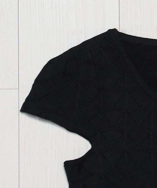 クロップド丈のレースニットトップです。フェミニティなムードが薫るエッジの効いたデザインが個性を彩ります。