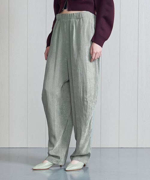 フィブリルのような毛羽立った見え方が特徴のポリエステルパンツです。
