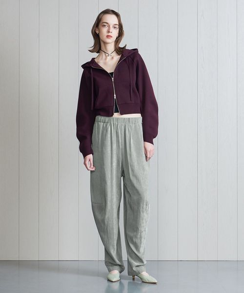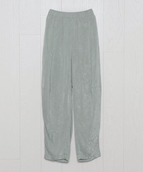 前膝にダーツを入れた特徴的なシルエットがアーバンムードを漂わせながら、リラクシーなゴムウエストが肩肘張らないスタイルを叶えます。