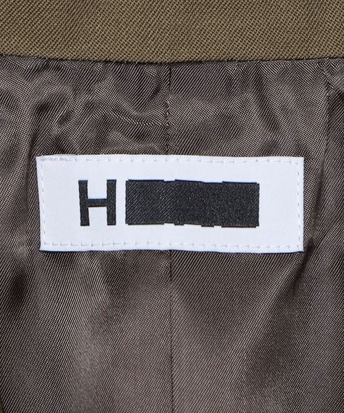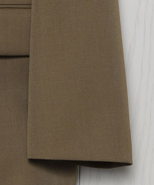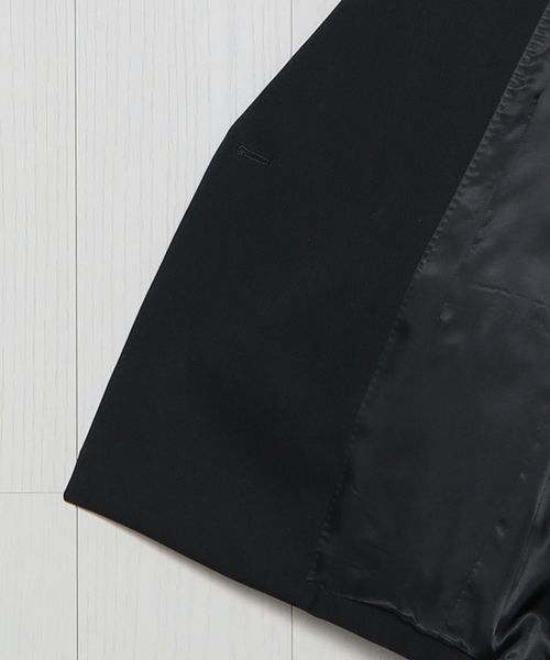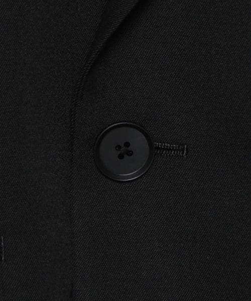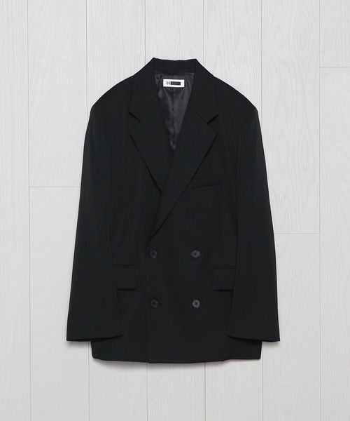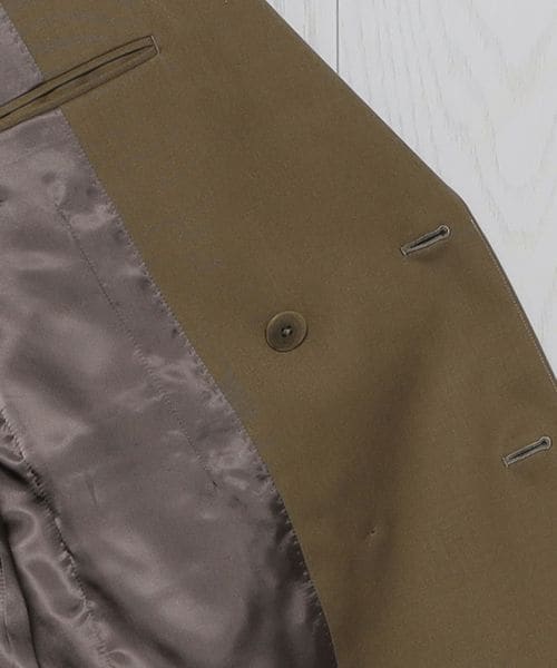 フロントは重厚感のあるダブル、裾にかけて絞りを加えたボディシルエットに、肩を下げ過ぎず強調させたシャープなデザインが新鮮なスタイルを生み出します。
