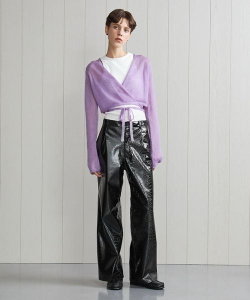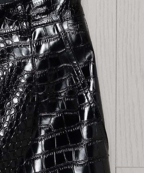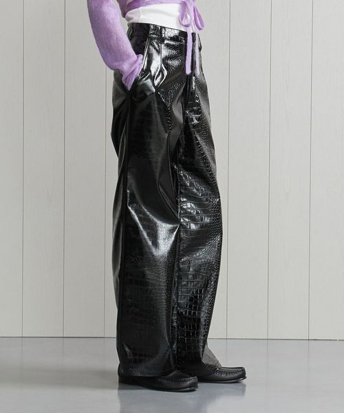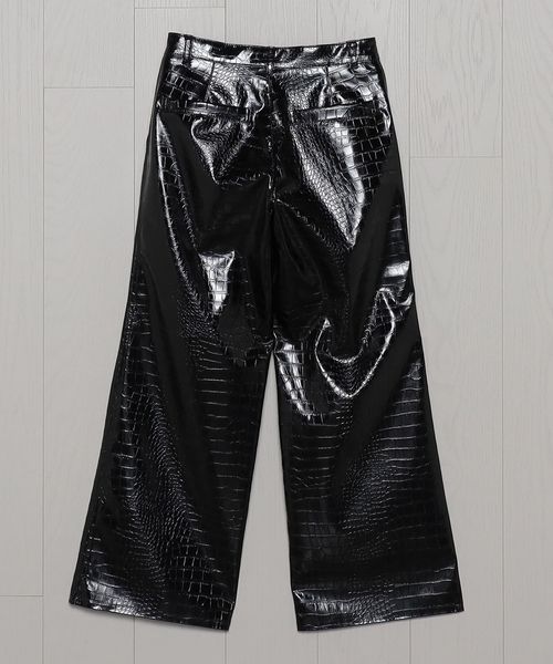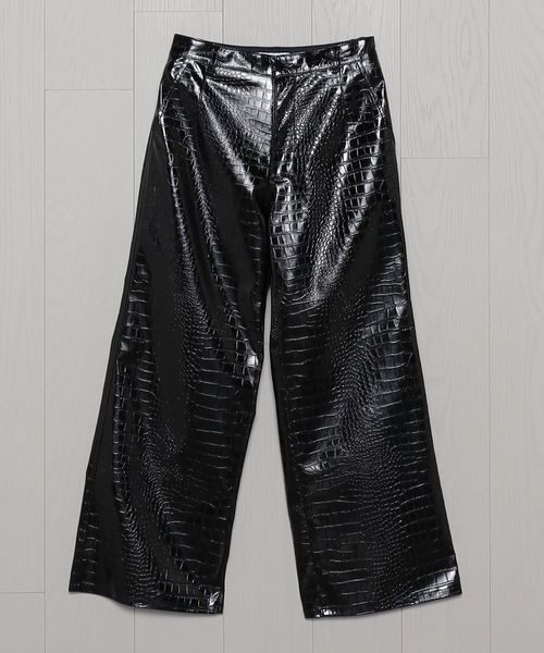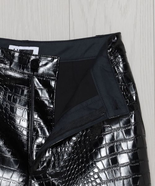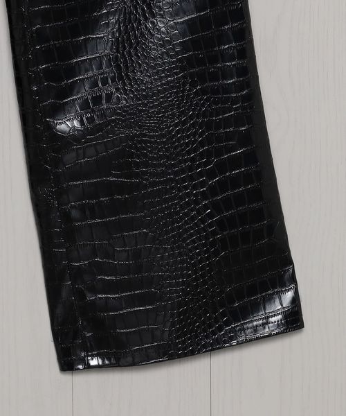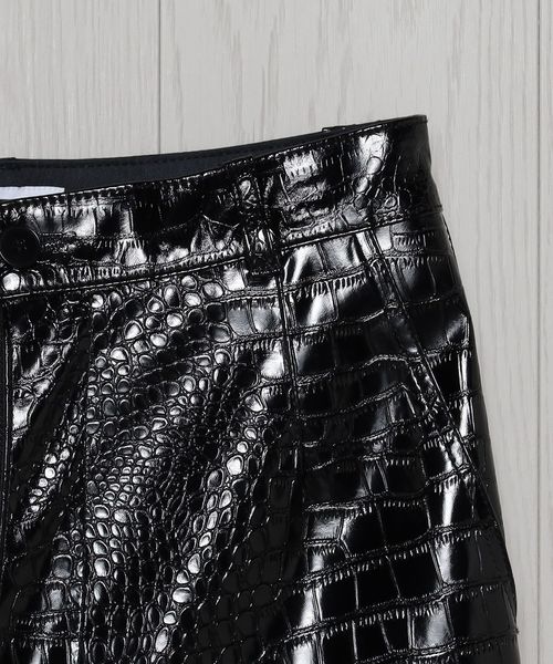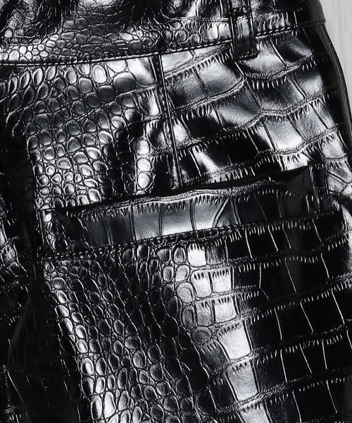 ワニ柄のエンボス加工を施したレザーライクパンツです。