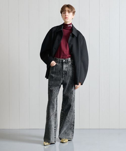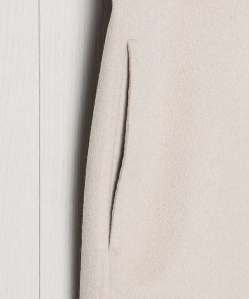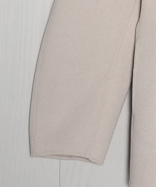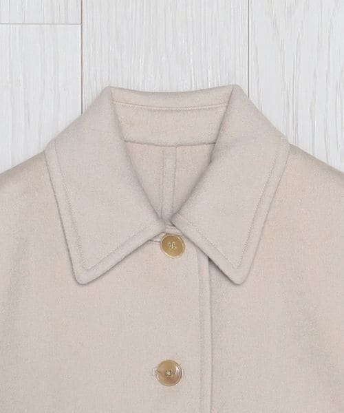 ウールカシミヤ混の風合いなめらかなメルトン生地で仕立てたステンカラーコートです。軽快なヒップ丈に、ほんのりウエストシェイプしたボディ、丸みを持たせたボリュームスリーブが特徴的なデザイン。すっきりとしたシームポケットがカジュアルにもきれいめな装いにも幅広く寄り添います。ミニマルでありながら、シルエットで魅せるフェミニティなムードが印象的なアウターコーディネートに導くおすすめの一着。