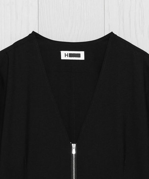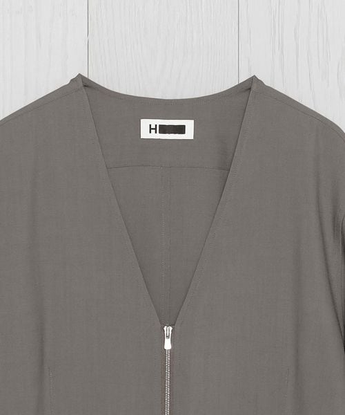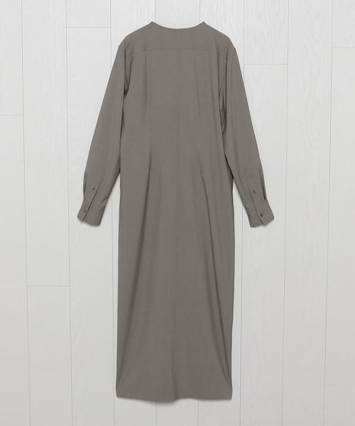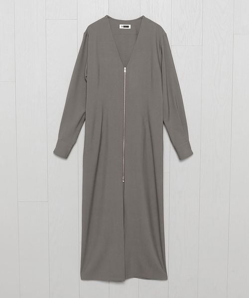 しなやかでドレープ感のあるトロピカルクロスで仕立てたマキシ丈ワンピースです。品のある生地に、シャープなフロントファスナーがエッジの効いたアクセントをプラスします。機能的なダブルジップが着こなしのアレンジを叶えながら、開けることで羽織としても楽しめるデザイン。タートルネックをインナーに添えたり、デニムやレギンスとも好相性です。すっきりとしたVネック開き、深めのスリットがシャープな雰囲気に抜け感を与え、一枚ではもちろん、さまざまなレイヤードに活躍いただけます。
