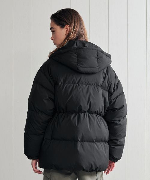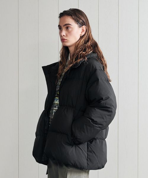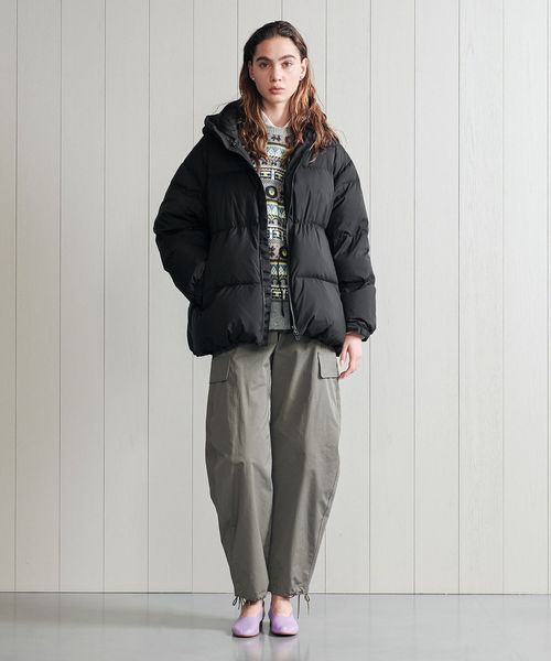 ビッグサイズがポイントのダウンブルゾンです。ダウンの中わたを詰めすぎず、ほどよい分量感になるようにボリュームを調整しました。ウエストと裾にはスピンドルを通し、絞ることでシルエットのアレンジを楽しめます。ヒップが隠れる着丈が安心感を与えながら、力の抜けたリラクシーなサイズバランス、無駄な装飾を省いたミニマルなデザインがさまざまなスタイルに寄り添う一着。日常に気負いなく袖を通せるオールマイティーなダウンジャケットは、ワードローブの新定番におすすめです。