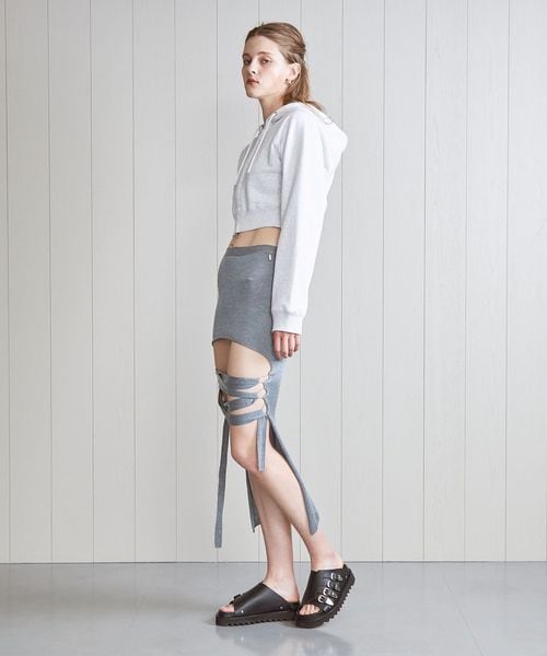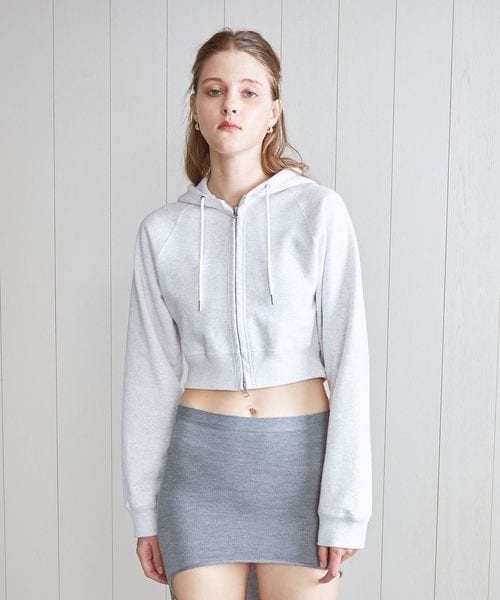 ベアトップのインナーを合わせたヘルシーな着こなしや、ダブルファスナーの下側を開けたアレンジも楽しめます。