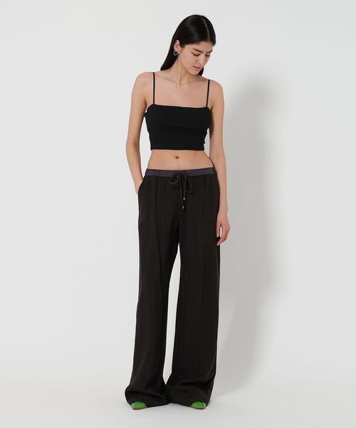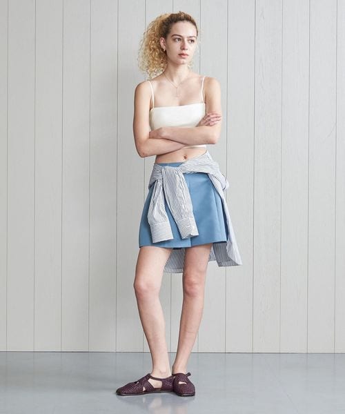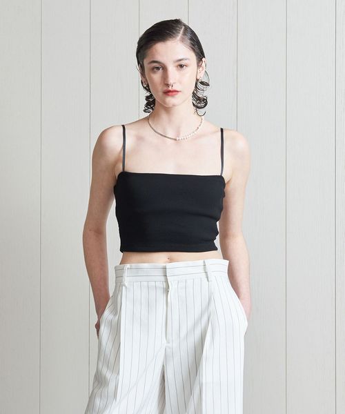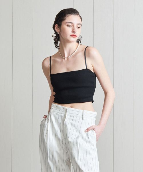 素肌に心地いいコットンリブのバンドゥ型キャミソールです。調節可能なストラップに加え、付属のパッドは取り外しができ、日常使いに役立つ汎用性の高さが魅力のアイテム。短めの着丈でバランスをとったミニマルなデザインは、シアートップスのインナーや、オーバーサイズジャケットのインにも好相性です。カジュアルからモードまで、幅広いトレンドスタイルに寄り添う万能な一品。