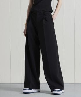 しっかりとした肉感のダブルクロス生地を使用したワイドパンツです。ポリエステルのさらりとしたタッチが素肌にも心地いいアイテム。太さがありながらも腰回りをすっきりと仕上げ、フロントタックで動きとボリュームをプラス。センタープレスが立体感を与えながら、品のある洗練されたスタイルを演出します。同シリーズのベアトップ(対象品番:16212991766)とのセットアップコーディネートもおすすめです。
