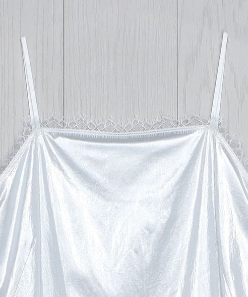生地の光沢とレースの縁取りが贅沢に映える、美しくもスタイリッシュなコンビネーション。