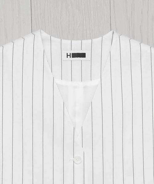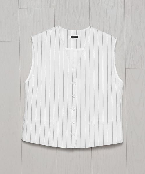 ホワイトにブラウンのピンストライプを組み合わせた、豊かなコンビネーションが魅力のベストです。