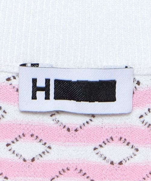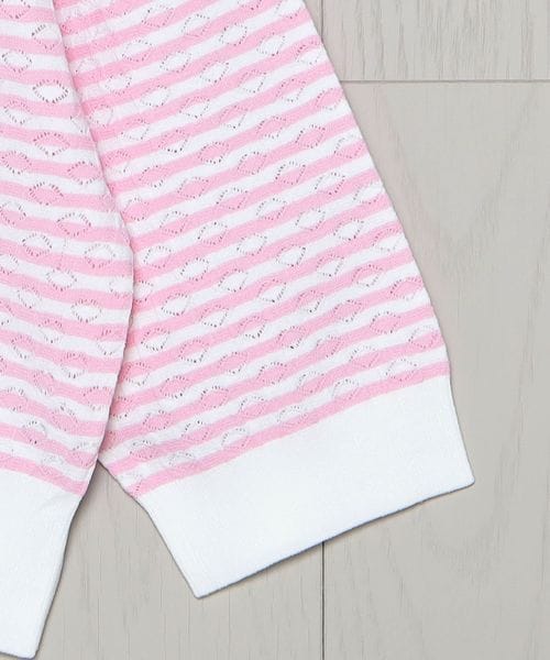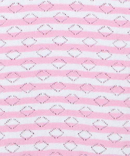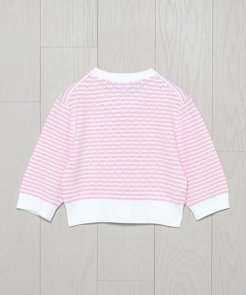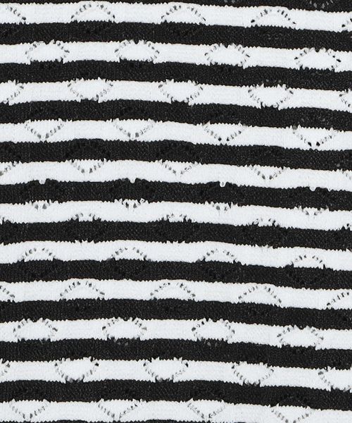 透かし編みに載せた細ピッチのボーダー柄、配色のリブが奥行のある表情を生み出します。