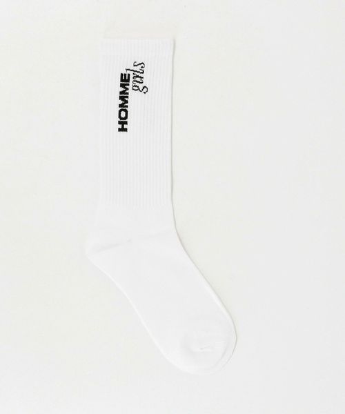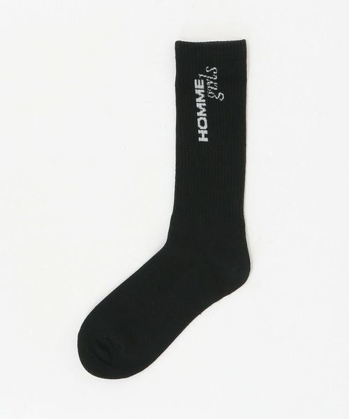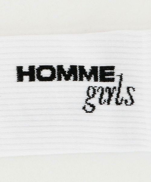 <HOMME GIRLS>のロゴをあしらった3足セットのリブソックスです。縦向きのロゴに、シックなモノトーンカラーがモードなアクセントを添えてくれます。コーディネートのスパイスにおすすめです。