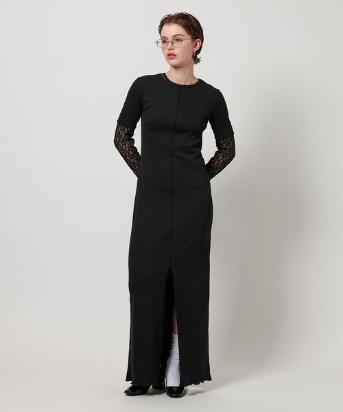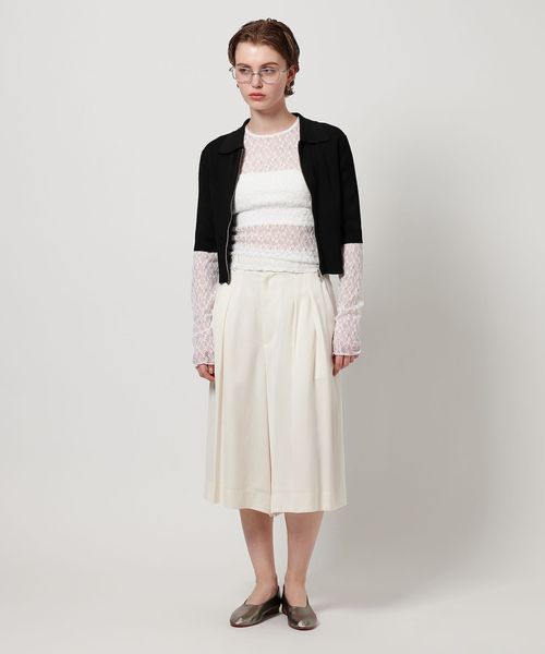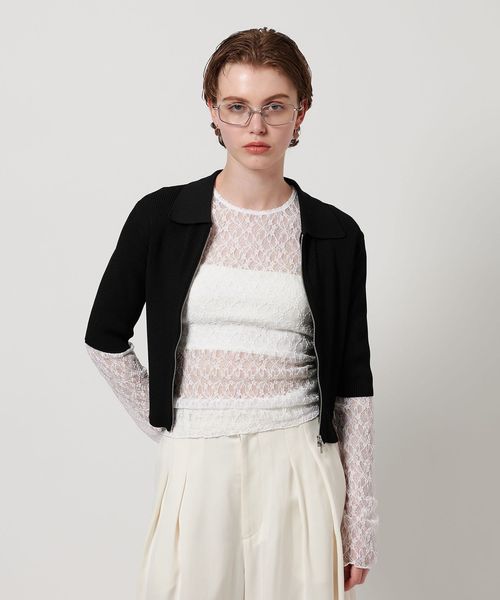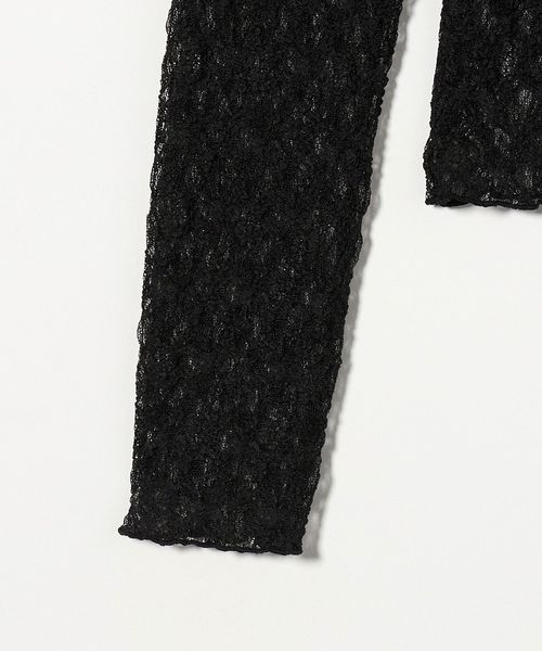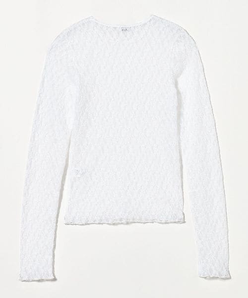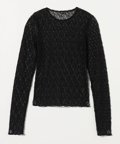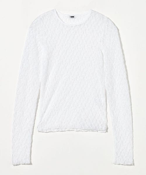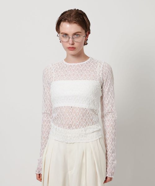 総レース仕立てのロングスリーブカットソーは、フィット感のあるミニマルなボディバランスに、長めの袖丈がさりげないニュアンスを与えます。細やかな花柄が甘さを抑え、センシュアルな大人のムードが薫る一着。インナーを添えて一枚着としても、上にTシャツやキャミを組み合わせたレイヤードも映えるアイテム。自由なスタイルを叶えながら、シンプルな装いをモダンに昇華します。