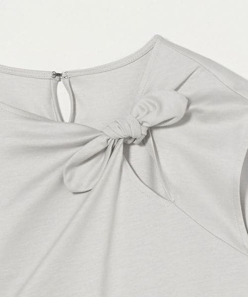 随所にあしらったノットディテールがアクセントを利かせるノースリーブカットソーです。上品な光沢感が印象的なスムース生地を使用しています。素肌が覗く結び目の隙間がヘルシーな雰囲気を添え、甘さを抑えたフェミニンなムードが大人のアーバンスタイルを演出します。マニッシュなスラックスとの組み合わせや、クリーンなワントーンコーディネートなど、カジュアルにもモードにも溶け込むおすすめの一着。