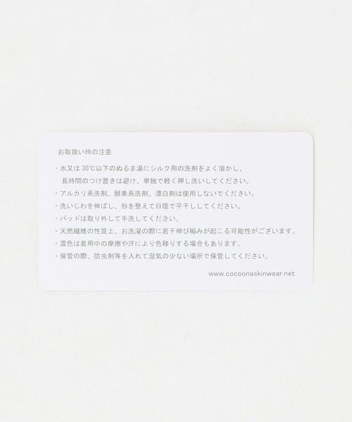 シルクのしなやかで洗練された質感、第2の肌をまとっているかのような自然な着用感、シンプルで着回しやすくアウターにひびかないデザインが特徴です。
