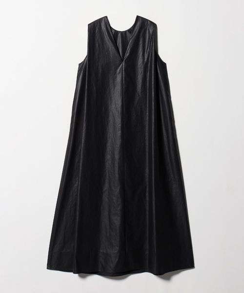 前後でネックの表情を変えた、豊かなバランスが魅力のロングワンピースです。ミニマルなフロントに、シャープなバックデザインでコントラストをつけた一着。ナチュラルなタッチが魅力のポリエステル素材を使用し、光沢加工によって生まれた艶のある表情と、ほどよいハリ感が特徴です。特徴的な質感と贅沢なフレアシルエットがエレガントなムードを添えながら、スタイルを華やかに印象付けます。カジュアルにもモードにも溶け込み、足元で印象が変わるマルチな一品。