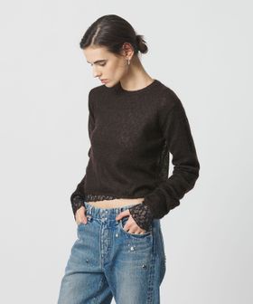 <H>ナイロンモヘヤウール ショートニット プルオーバー