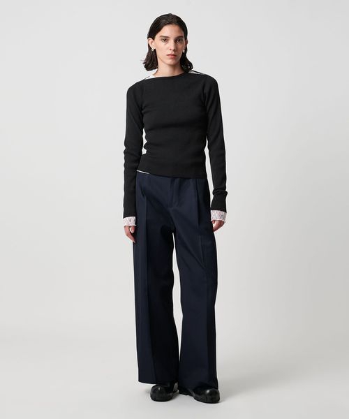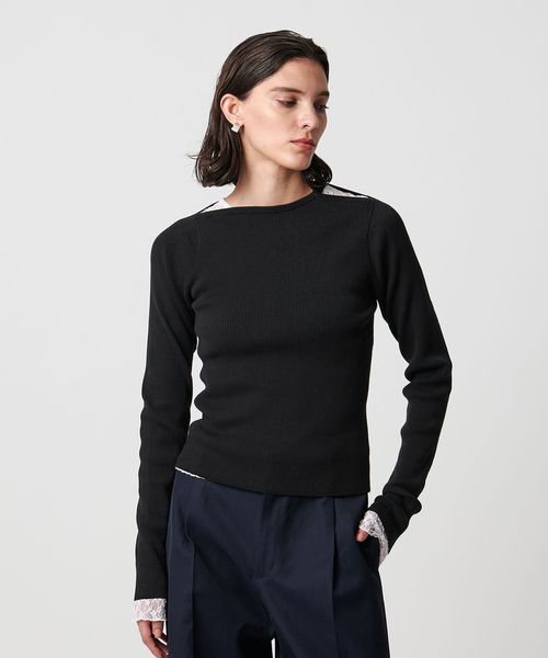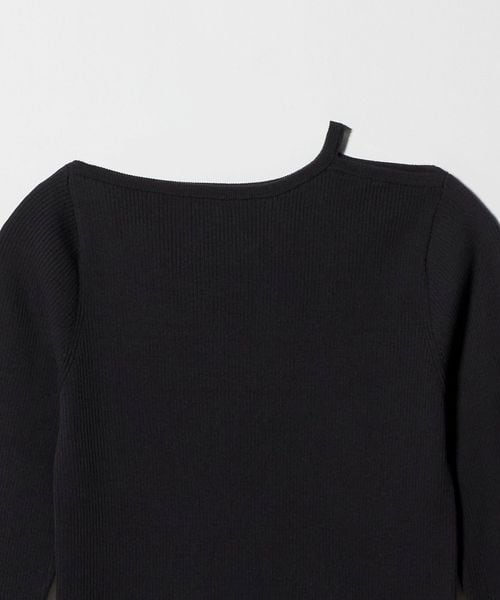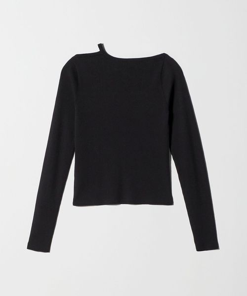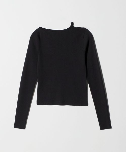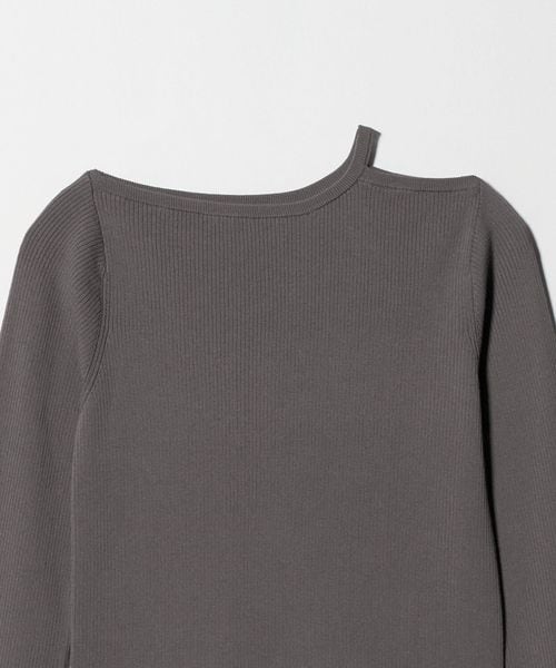 左右で表情を変えた、アシンメトリーなボートネックがポイントのロングスリーブニットです。細めのリブ組織で仕立てた、タイトフィットなボディシルエットが特徴です。太めのパンツと組み合わせたり、羽織のインナーとしても映え、まとうだけでファッションムードを高めてくれる一着。都会的な雰囲気へと誘いながら、シンプルな装いも存在感のあるスタイルに。