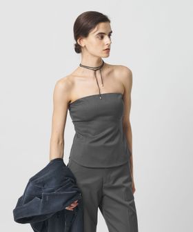 シンプルで洗練されたフェミニティを引き出すビスチェです。薄手ながらハリがあり、きれいな表面感のツイルを使用しています。ダーツをあしらった立体的なカップに、胸周りはゴム仕立てでフィット感を高めたデザイン。カットソーを組み合わせた大胆なレイヤードもおすすめです。自由な着こなしで日常のスタイルに華やかなアクセントを添えてくれます。