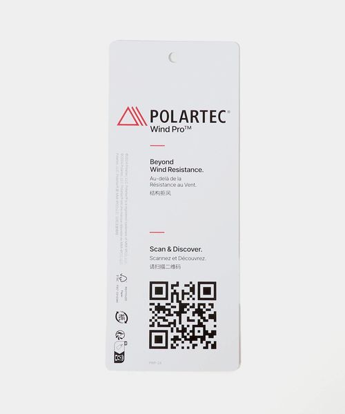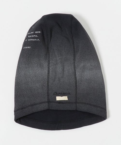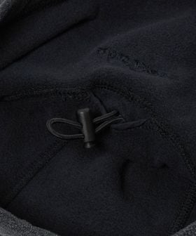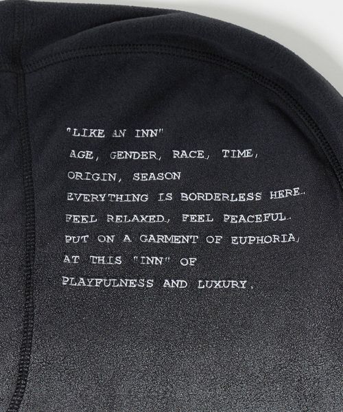 <WILD THINGS>とのコラボレーションによって誕生した、高機能素材であるPOLARTEC Wind Proを搭載したフードネックウォーマー。生地の段階でグラデーションのピグメントプリントを施し、製品化後にはボールバイオ加工を追加しています。製品加工を施すことで、自然なフェード感と奥行きのある独特な表情を生み出しています。