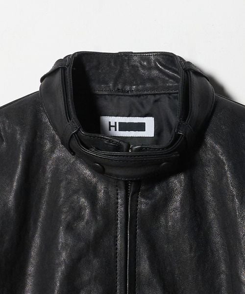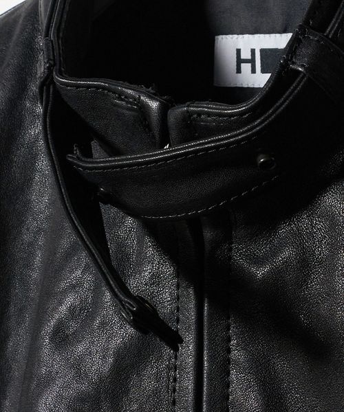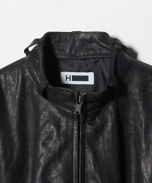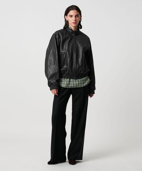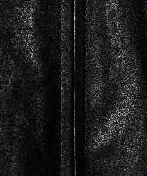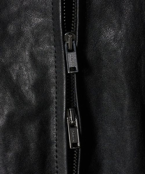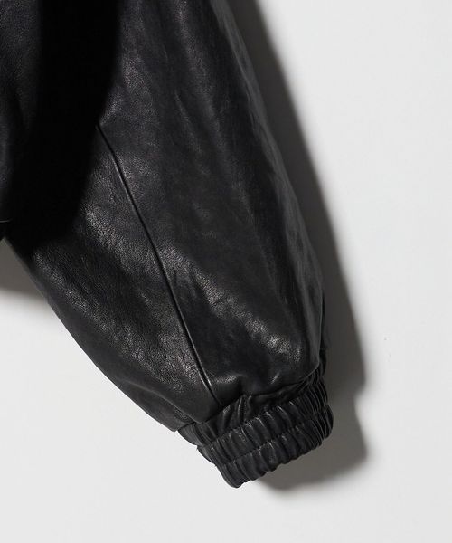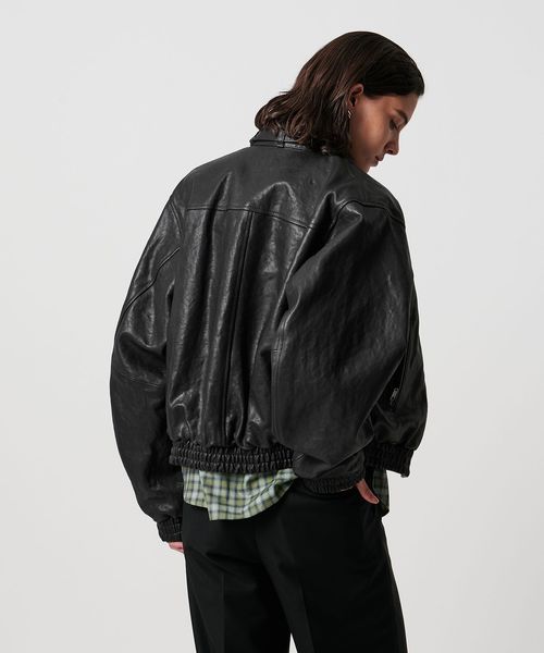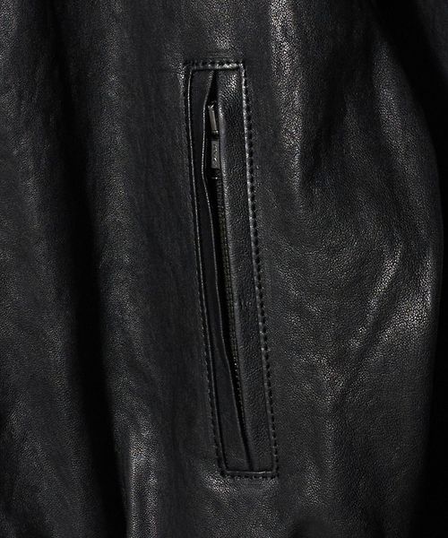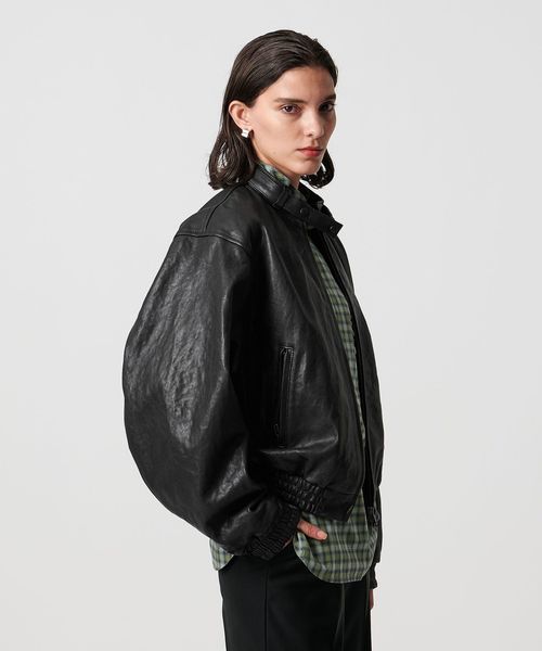 ウォッシュ感を表現したハードな質感が際立つ、シングルライダースディテールのブルゾンです。裾や袖口は、ニットリブではなく共革のシャーリングで仕立てた品のある仕上がり。軽快なショートレングスが、さまざまなボトムと相性がよく、カジュアルにもモードにも寄り添う一着。ミニマルなデザインと重厚感のある表情がタイムレスな魅力を放ちながら、自由で飾らないアーバンスタイルへと導きます。