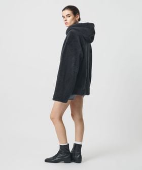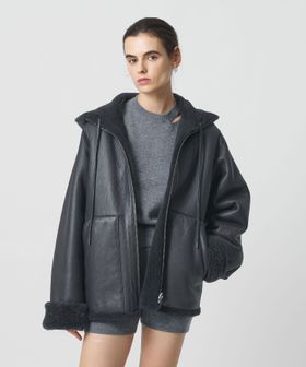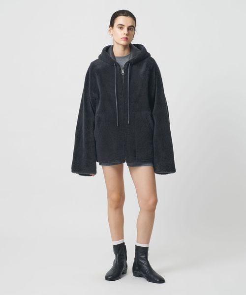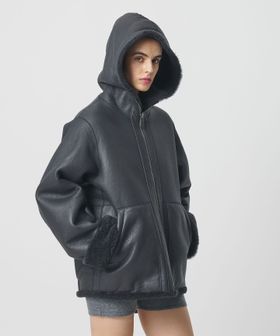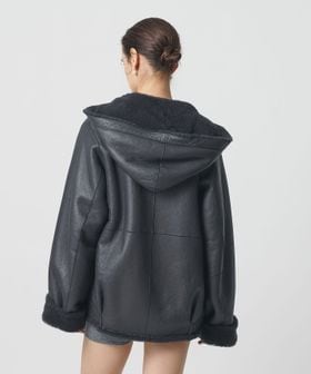 ラグジュアリーな存在感を放つ、ムートン仕立てのリバーシブルコートです。フード付きのカジュアルなデザインに、裾を摘まんだコクーン気味のシルエットが肩肘張らないアーバンスタイルを演出します。片面は樹脂加工で艶をもたせ、もう一方の面は毛足長めの華やかなボディバランス。モダンな表情と抜け感を持ちあわせた深みのあるグレーカラーも魅力です。デニム合わせでラフに崩したり、ミニスカートを添えたフェミニンな着こなしもおすすめ。冬の装いを温かく包み込み、無造作に羽織るだけで気分を高めてくれるタイムレスな一着。