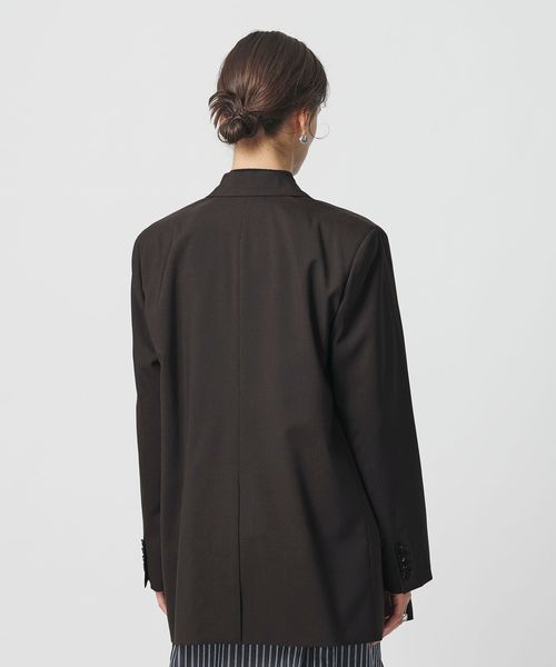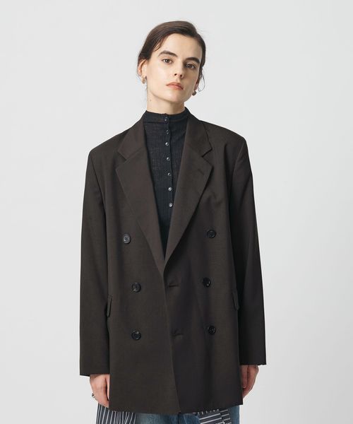 アウターライクにも楽しめる、オーバーサイズのダブルブレストジャケットです。端正なムードを与える肩パッド入りに、ショルダーラインに丸みを持たせて穏やかなニュアンスを利かせたリラックスシルエット。ダブル仕様ならではの華やかな重厚感が着映えを叶えながら、さらりとした軽やかな風合いが日常に気負いなく活躍します。無造作に纏うだけで洗練されたスタイルに導くおすすめの一着。