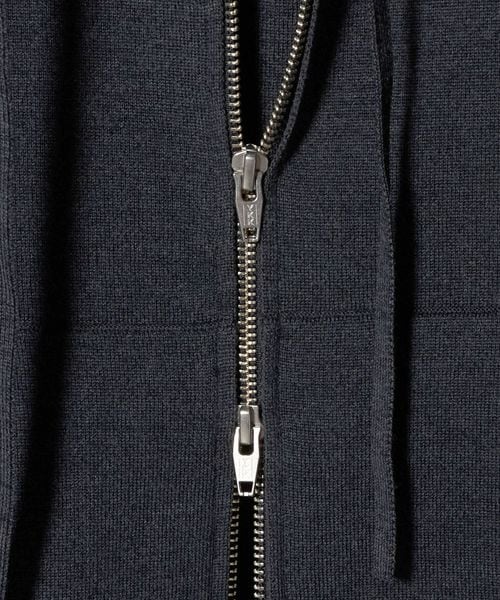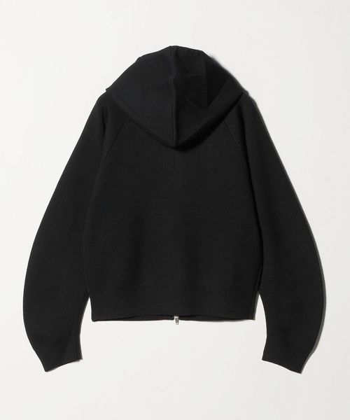 立体感のあるカーブスリーブがモダンなムードを運ぶ、ニットジップパーカーです。ウール/ポリエステルの糸をスムース組織にした張りのある肉感が、特徴的なフォルムを美しく際立たせています。カジュアルからきれいめまで合わせるボトムを選ばず、同シリーズのパンツとのセットアップもおすすめです。アーバンムード漂う存在感で、シンプルな装いも印象的なスタイルに導きます。