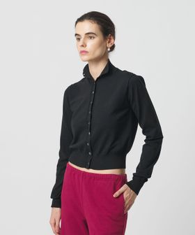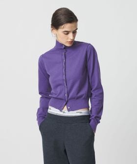 多めに配したフロント釦が華やかなアクセントを添えるカーディガンです。上品なハイネックに、ふんわりとしたパフスリーブ、コンパクトなボディが華やかに調和した魅力的なデザイン。厚すぎず薄すぎないほどよい肉感でありながら、肌触りのよいもっちりとした質感もポイントです。パンツにもスカートにも相性がよく、アウターから覗くだけで着映えが叶う一着。主役にも脇役にもなる存在感で、シーズンスタイルをスタイリッシュに彩ります。