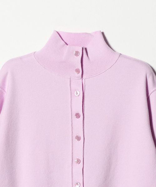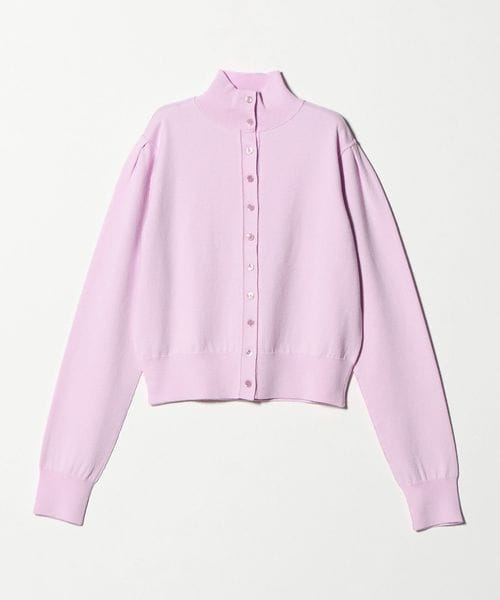 多めに配したフロント釦が華やかなアクセントを添えるカーディガンです。上品なハイネックに、ふんわりとしたパフスリーブ、コンパクトなボディが華やかに調和した魅力的なデザイン。厚すぎず薄すぎないほどよい肉感でありながら、肌触りのよいもっちりとした質感もポイントです。パンツにもスカートにも相性がよく、アウターから覗くだけで着映えが叶う一着。主役にも脇役にもなる存在感で、シーズンスタイルをスタイリッシュに彩ります。