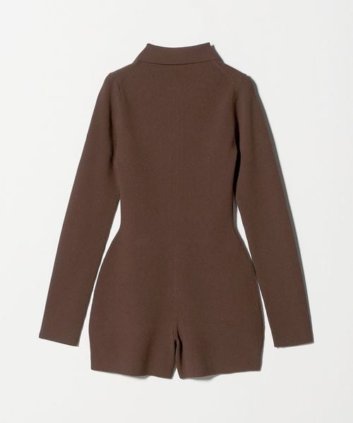 ポロカラーがアクセントのミニマルなニットオールインワンです。さらりとした質感のレーヨン/ポリエステルの強撚糸を使用しています。リブ組織で編みたてたフィット感のあるシルエットがコンパクトなレングスを際立たせ、愛らしいボディバランスを演出。一枚でさらりと着こなすのはもちろん、重厚感のあるジャケットとの組み合わせもおすすめです。印象的なスタイルを叶えながら、大人のフェミニティを昇華させるロマンティックな一着。