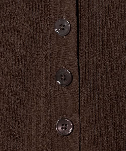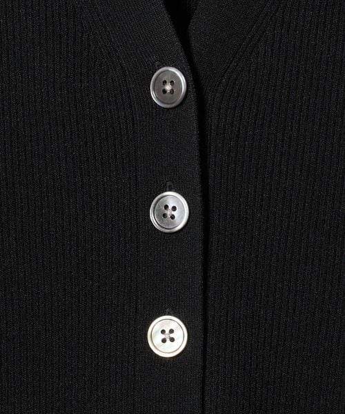 リブ組織で仕立てた、タイトフィット&ロング丈シルエットが特徴のVネックカーディガンです。さらりとした質感のレーヨン/ポリエステルの強撚糸を使用しています。長めのレングスを引き立てる、中央に並んだ5つボタンがアクセントをプラス。一枚着としても映え、パンツにもスカートにも合わせやすいボディバランスが魅力です。アーバンムード漂う存在感で、シンプルなコーディネートを華やかに彩ります。