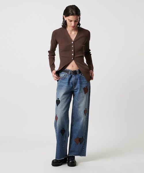 <H>リブ Vネック カーディガン
