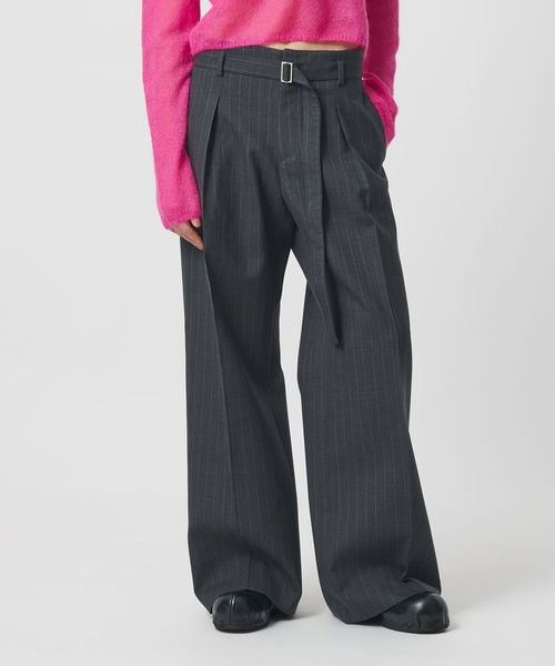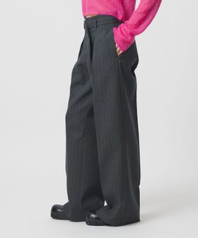 <H>ストライプ ダブルクロス タックワイドパンツ